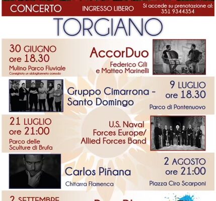 Il 21 luglio, invece, la U.S. Naval Forces Europe Band, una delle bande ufficiali della NATO, si esibirà in via del tutto eccezionale presso il Parco delle Sculture di Brufa. La band è composta da musicisti professionisti militari che suonano ogni anno in diversi Stati europei, africani e dell’Asia occidentale.
