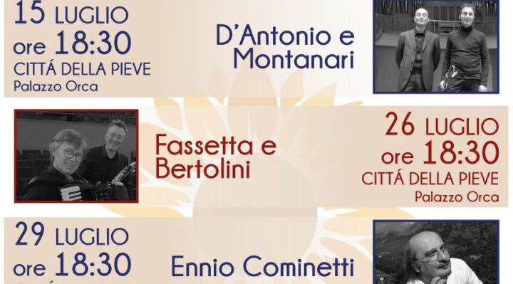 Il secondo appuntamento della giornata sarà alle ore 18:30 a Palazzo Orca di Città della Pieve. Il flautista Vanni Montanari e il chitarrista Donato D’Antonio presenteranno un concerto dal titolo Argentina y Oriente, che permetterà al pubblico di fare un viaggio tra luoghi fisici e metafisici.
