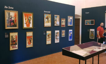 «La mostra – ha spiegato Piero Sacco, presidente di Lagodarte – propone un itinerario espositivo dedicato alla grafica pubblicitaria cinematografica, attraverso l’esposizione di bozzetti originali e delle corrispondenti locandine e manifesti di film italiani e stranieri, dagli anni Quaranta alla fine degli anni Ottanta: da “Ombre Rosse” a “Per un pugno di dollari”, da “Ricomincio da tre” a “La voce della Luna”. Pezzi unici al mondo, opere suggestive, provenienti dal “Museo del Cinema a Pennello” di Montecosaro (MC) realizzati con varie tecniche e stili dai maggiori cartellonisti italiani: Ballester, Brini, De Seta, Olivetti, Ciriello, Innocenti, Fiorenzi, Ferrini, Piovano, Sciotti, Jano, Simeoni, Casaro e Milo Manara».