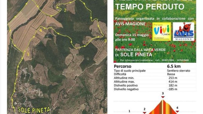La giornata di domenica prevede il ritrovo dei partecipanti presso l’area verde di Sole Pineta alle ore 9. Il percorso di circa 6 km è adatto a tutti ma l’organizzazione segnala che si passerà nelle vicinanze di campi coltivati a favetta e pertanto sconsiglia la partecipazione a soggetti afflitti da favismo.