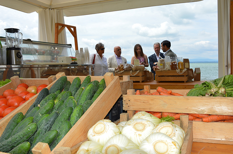 “La valorizzazione dei prodotti e dei luoghi – ha detto Guerri – è proprio uno degli obiettivi che ci siamo posti con questa manifestazione. Grazie all’intesa con ProBio e Strada del vino Colli del Trasimeno siamo riusciti ad allargare la nostra offerta e ad affiancare alla mostra mercato e al percorso a calice tra i banchi d’assaggio delle cantine anche tanti eventi collaterali”. Innanzitutto, ai giardini del Pidocchietto è stata allestita l’area ‘Alcol-free’, a cura di ProBio, dove è possibile degustare centrifughe, frullati, frutta e verdura completamente biologici e dove, domenica a pranzo, si potranno acquistare cestini da picnic con menù vegetariano o biologico con hamburger bio.