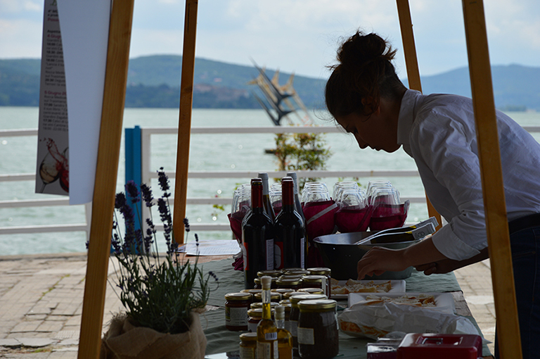 A farla da padrone è ovviamente il vino, ma non mancano gli stand con pesce di lago e di mare, tartufo, verdura e frutta. Sabato 11 giugno, a Passignano sul Trasimeno ha preso il via la due giorni di ‘Ca’ di Bacco. Bio wine e non solo’, la mostra mercato di vini e prodotti biologici e biodinamici giunta alla sua quarta edizione. A inaugurare l’evento, che si chiuderà domenica 12 giugno, Anita Tizzi, Carlo Ghigi e Letizia Guerri della cooperativa Group Tevere servizi, organizzatrice dell’evento, Ermanno Rossi, sindaco della città, Luca Stanteri, presidente di ProBio, e Sabrina Cantarelli, presidente della Strada del vino Colli del Trasimeno. La novità di quest’anno è infatti la collaborazione con queste due associazioni, la prima che raccoglie circa centro produttori biologici umbri e la seconda composta da enti pubblici, cantine e imprese con la finalità di promuovere il territorio ad alta vocazione vitivinicola del Trasimeno.