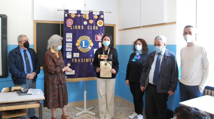 E così mercoledì mattina, con una cerimonia presso la scuola di Passignano, Caterina ha ricevuto un diploma e una medaglia dalle mani di Aldo Covarelli, responsabile umbro dell’iniziativa. Presenti anche la presidente del Lions Trasimeno, Maria Lucia Perego e il dirigente scolastico Giuseppe Costanzo. Sono oltre venti anni che i Lions, attraverso questo concorso grafico, spronano i più giovani a riflettere su un grande argomento quale è la pace. L’edizione 2020-2021 era dedicata al tema “La pace attraverso il servizio”. Al Trasimeno si era classificata prima appunto Caterina Cascella, con la sua rappresentazione di un pullman super colorato che offre un servizio gratuito di trasporto nell’universo, mostrando tutta la gioia e la voglia che hanno i giovani di viaggiare in un mondo di pace.
