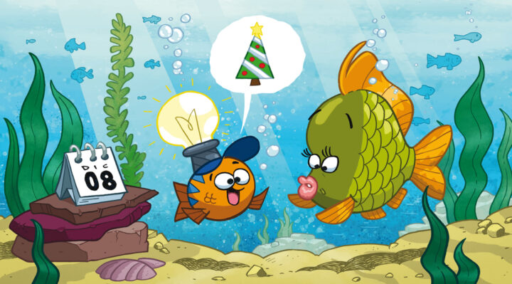 L’albero sull’acqua più grande del mondo è stato acceso. Ma chi sono i veri ideatori e realizzatori di quest’opera imponente e suggestiva? Si narra che siano un gruppo forte e unito di animali che vivono al Trasimeno, capitanati da Ascanio, un simpatico persico sole con un cappellino a forma di lampadina che s’accende ogni volta che ha un’idea geniale.