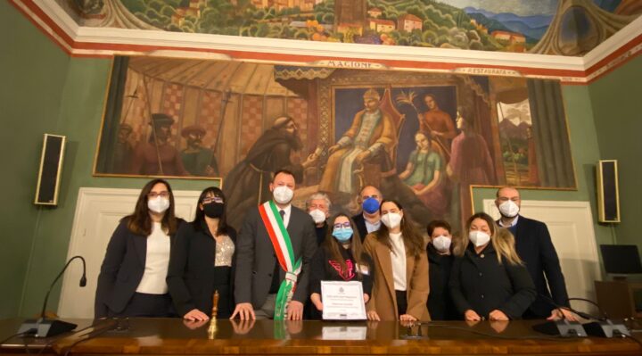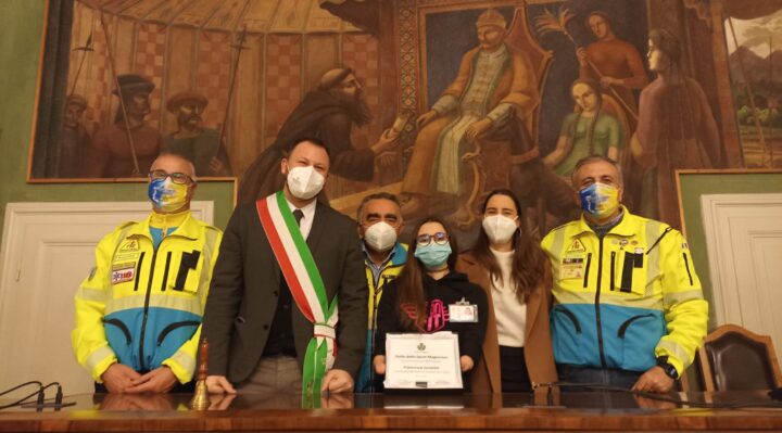 All’omaggio dell’amministrazione si è aggiunto quello del consiglio direttivo della Misericordia di Magione che ha fatto dono a Francesca Cesarini della tessera della Confraternita come volontaria ad honorem con la tessera numero 2115 consegnata dal Governatore Fabrizio Alunni.