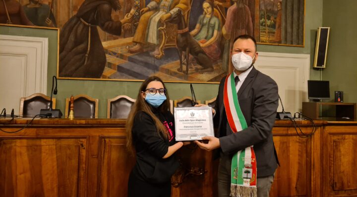 Francesca Cesarini lo racconta con estrema semplicità in occasione della consegna della targa “Stelle dello sport magionese” consegnatale dall’amministrazione comunale di Magione, nella persona del sindaco Giacomo Chiodini assieme al presidente del Consiglio comunale Daniele Raspati, per i suoi meriti sportivi.