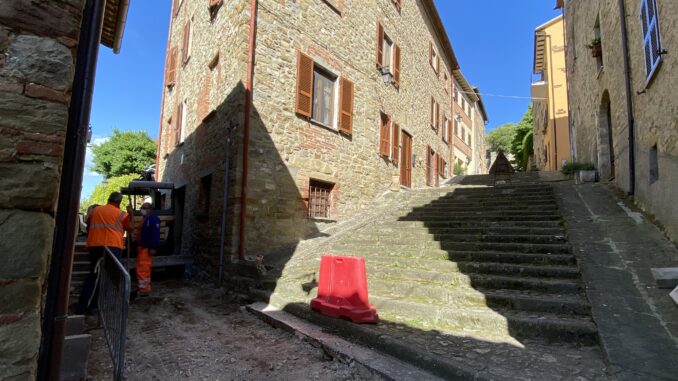 Con il rifacimento della pavimentazione, che verrà fatta in pietra arenaria mentre per i gradini della scalinata verranno recuperati gli antichi ciottoli come voluto dalla Soprintendenza per i beni ambientali architettonici artistici e storici dell’Umbria; verranno realizzati i sottoservizi che prevedono il passaggio della rete del metano e della fibra ottica.