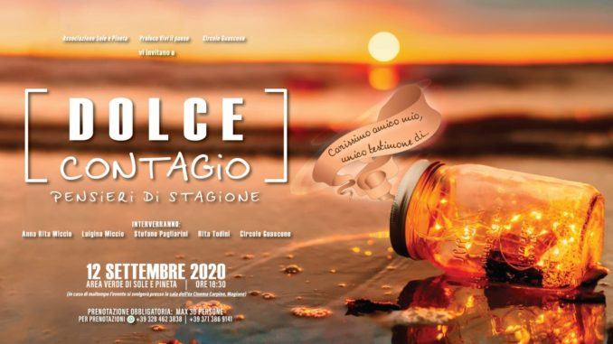 Si ritorna a piccoli passi con lo spettacolo “Dolce contagio…pensieri di stagione – L’associazione Sole Pineta e la proloco Vivi il Paese di Magione organizzano per sabato 12 settembre, ore 18.30 area verde Sole Pineta, l’evento “Dolce contagio…pensieri di stagione” con letture di testi e pensieri originali scritti da diversi autori. Ad accompagnare le letture, lo spettacolo musicale-teatrale portato in scena dal Circolo Guascone.