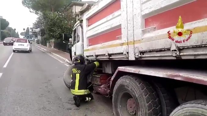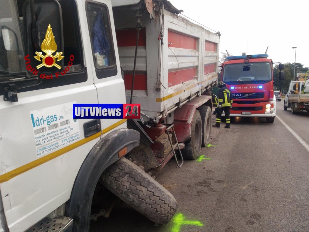 Camion rompe assale e perde le ruote a Strozzacapponi sulla Pievaiola illeso l’autista