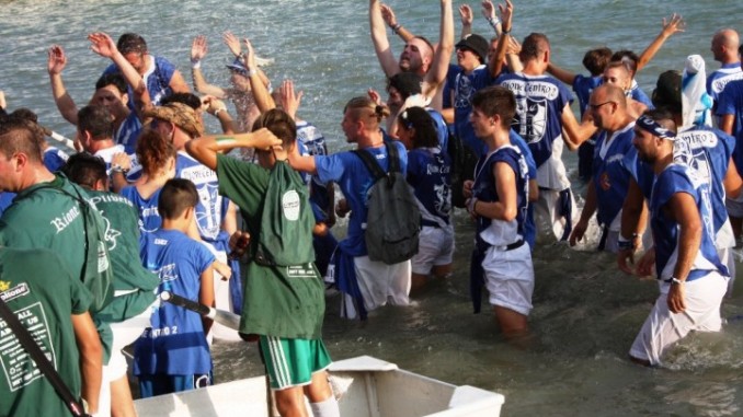 La ‘battaglia’ in acqua. E proprio i rossoblu sono stati i protagonisti di un’emozionante partenza in acqua, con un testa a testa tra i rematori Rodolfo Sessa e Roberto Baffetti e i biancoblu Daniele Giappichelli e Alessandro Bigerna, culminato con uno scontro tra le due barche costato, poi, al San Donato la squalifica dalla classifica finale. “È stata una bella ‘battaglia’ – ha raccontato Giappichelli – e, con queste onde, è stata ancora più avvincente e divertente. Purtroppo, tornando giù dalla boa il contatto è stato inevitabile perché la traiettoria era la stessa della nostra. Abbiamo regalato uno spettacolo in più a chi guardava da terra”.