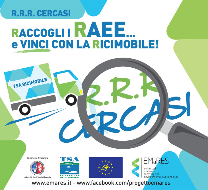 Con “Raccogli i RAEE e vinci con la Ricimobile” TSA, progetto che ha riscosso un notevole successo nell’anno scolastico passato, si propone di sensibilizzare alunni, docenti e genitori ad una corretta gestione dei Rifiuti da Apparecchiature Elettriche ed Elettroniche (RAEE). Ciascun italiano produce in media 14,7 kg di RAEE all’anno: di questi solo 4 kg viene correttamente avviato a recupero, dato che può essere sicuramente migliorato attraverso una maggiore conoscenza su raccolta e riciclo di questa particolare tipologia di rifiuto. Bisogna ricordare che i RAEE rappresentano una preziosa fonte di metalli nobili (rame e alluminio), metalli preziosi (oro, argento e platino) e di materie prime rare come le terre rare: le terre rare contenute nei cellulari, nei tablet, nei computer, nei telecomandi e in tanti piccoli oggetti di uso comune, hanno costi elevati con incrementi di prezzo anche di 10 volte negli ultimi anni e non sono reperibili in Europa: assumono quindi un ruolo strategico nella nostra economia industriale. TSA, attraverso il progetto LIFE+EMaRES, ha ideato una gara di raccolta dei piccoli RAEE nelle scuole attraverso la Ricimobile, una piccola “ricicleria mobile” itinerante che visiterà i plessi scolastici. Alle scuole partecipanti verranno consegnati dei contenitori per la raccolta e, al termine del periodo di gara, verranno premiate le scuole più virtuose, calcolando il maggior quantitativo procapite di RAEE e questo per non danneggiare nella classifica le scuole più piccole.