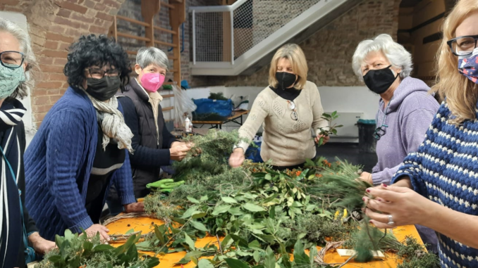 Per una decina di giorni i volontari si sono ritrovati nella palestra comunale per dare vita ad una serie di eleganti ghirlande per rendere più accoglienti sotto le festività i vicoli e le piazzette del centro storico.