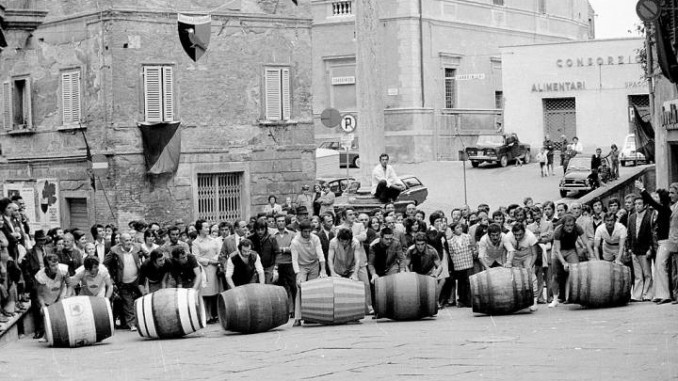 MONTEPULCIANO – “40 anni di Bravìo delle Botti… Storia, emozioni e colori” è la mostra fotografica dedicata ai quarant’anni del Bravìo delle Botti di Montepulciano che verrà inaugurata sabato 9 agosto alle ore 18:00, presso il Museo Civico Pinacoteca Crociani, in Via Ricci a Montepulciano. Un’ articolata esposizione per far rivivere quarant’anni di Bravìo, raccontato attraverso foto storiche, dal 1974 fino ad oggi, e documenti originali scritti da Don Marcello, il tutto arricchito dagli abiti storici delle contrade. Materiale, colori e stoffe che hanno l’intento di rievocare quelle emozioni particolari che ogni poliziano, e non solo, prova alla vista di una botte che rotola nella gara più attesa dell’anno. La mostra fotografica è organizzata dal Magistrato delle Contrade, in collaborazione con il Comune di Montepulciano, la Pro Loco di Montepulciano e il Photoclub Poliziano. Adriano Farina, che ne è il presidente, racconta così l’esposizione. “La mostra fotografica “40 anni di Bravìo delle Botti… Storia, emozioni e colori”, è stata voluta dal Magistrato delle Contrade come primo evento per festeggiare i quarant’anni di questa manifestazione.