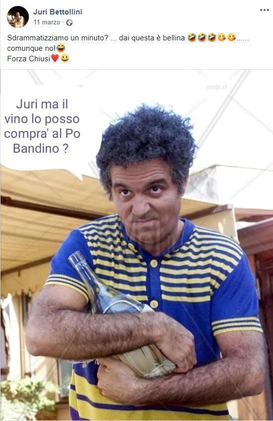Il sindaco di Chiusi l’11 marzo aveva pubblicato un post per sdrammatizzare