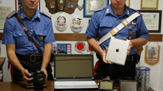 È proprio durante il controllo dell’autovettura (una Fiat Croma spesso utilizzata come auto aziendale dai rappresentati) che i militari scoprono un nascondiglio ricavato nel paraurti posteriore dove sono occultati tutti gli oggetti trafugati al 31enne di Passignano sul Trasimeno (un tablet, una macchina fotografica ed un PC portatile). Ma le soprese non sono finite perché proprio dal nascondiglio realizzato con tecniche raffinatissime in stile “007”, vengono fuori altri apparecchi elettronici frutto di altrettanti furti su auto avvenuti in provincia. Si tratta di un altro PC portatile, due tablet note marche, due smartphone, due macchine fotografiche e cinque navigatori satellitari, tutta merce che ha un valore complessivo di oltre 4000,00 euro. A quel punto il 49enne ammette candidamente che ha fatto qualche furtarello per coprirsi le spese di viaggio, ma la giustificazione non serve ad evitargli l’arresto per furto aggravato continuato, visti anche i precedenti specifici che il soggetto annovera. L’arrestato è stato posto a disposizione della Procura di Spoleto mentre la refurtiva recuperata sarà riconsegnata ai denuncianti, che in parte sono stati già rintracciati atteso che al momento si è accertato che alcuni furti sono stati consumati a Passignano sul Trasimeno ed a Trevi .
