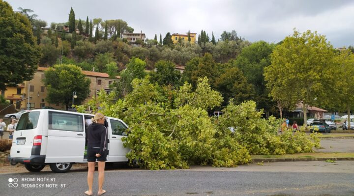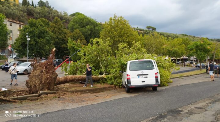 La bomba d’acqua ha creato allarme per la violenza del vento e della pioggia, tanto che nei video girati dai cittadini e pubblicati sui social, dove si vedono fiumi di fango, rami pericolanti e alberi schiantati.