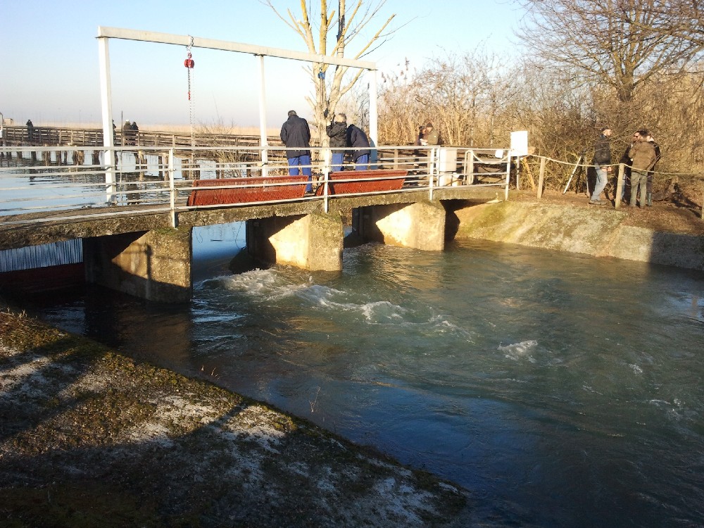 Le carrucole manovrate dagli operatori di Umbria Mobilità Esercizio s.r.l. hanno iniziato a muoversi poco dopo le 7,30 di questa mattina presso il primo sistema di paratoie dell’Emissario di San Savino sul lago Trasimeno.