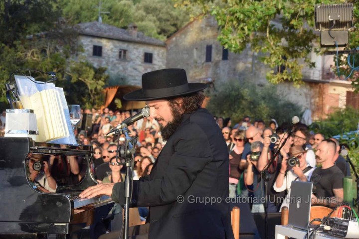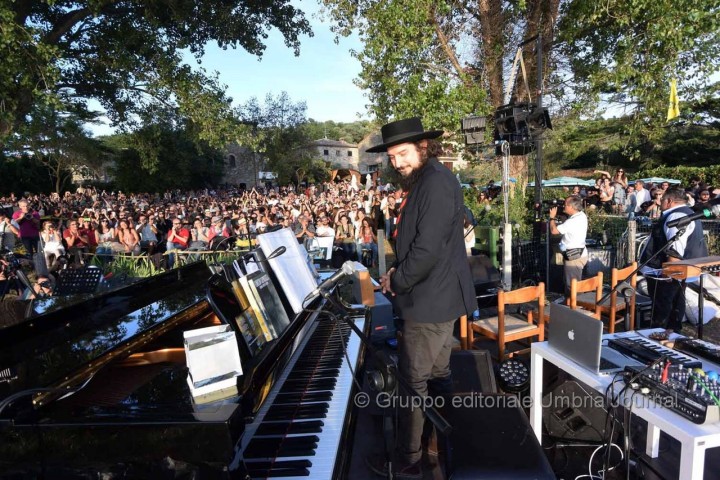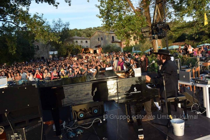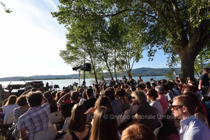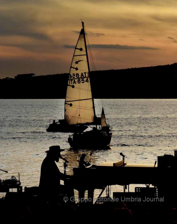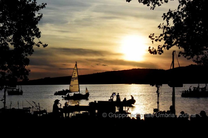 ISOLA MAGGIORE (Tuoro sul Trasimeno) – Dal tramonto infuocato al cielo stellato. Dal sole alla luna di giugno, quasi a scambiarsi di posto nel passaggio dal giorno alla notte nel magnifico scenario dell’Isola Maggiore. A far da cornice musica, sirene d’acqua dolce, natura, ambiente incontaminato. E il ricordo che si fa emozione e il rimpianto per aver dovuto dire addio ad una persona che ha dato tanto per la musica in Umbria che si fa speranza. È passato poco tempo dall’idea geniale di Sergio Piazzoli di far “suonare” un’isola al tramonto fino alla magica serata di ieri sera di Vinicio Capossela che ha messo la ciliegina sulla torta, con il suo “Concerto per sirene d’acqua dolce”, alla prima edizione di Moon in June che si è svolta dal 19 al 21 giugno scorsi. Insieme alla Fondazione “SergioPerLaMusica”, organizzatrice dell’evento, l’artista, che ha ricoperto per l’occasione particolare anche il ruolo di direttore artistico della tre giorni nella piccola isola al centro del Lago Trasimeno, ha deciso di dedicare il concerto conclusivo all’amico fraterno e alle sirene d’acqua dolce “perché è nel canto delle sirene che ritroviamo tutti quelli che abbiamo amato”.