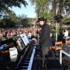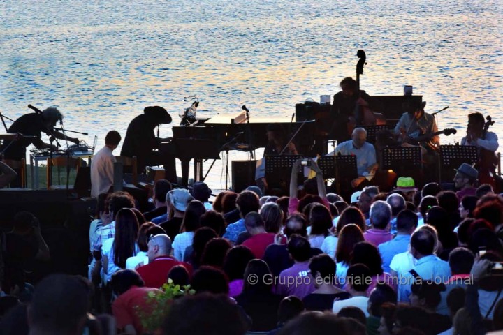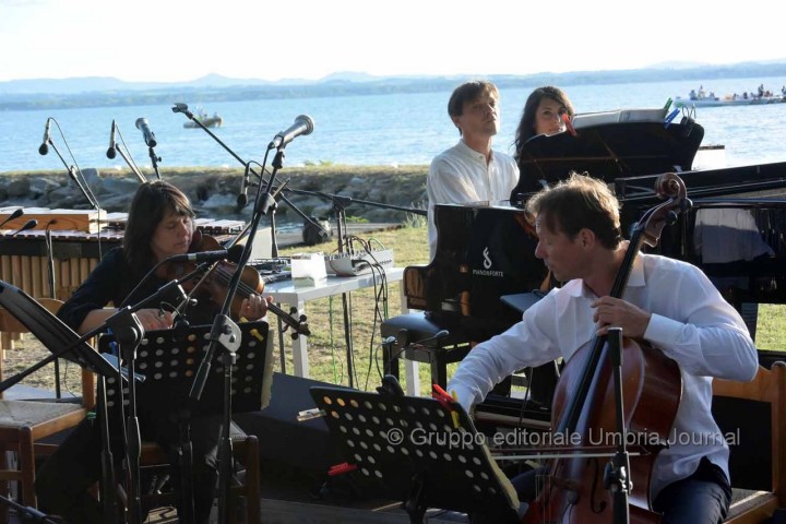 Prima di partire con “I pianoforti di Lubecca” Capossela dichiara: “Il sogno con Sergio era mettere un pianoforte su questo lago”. Sorprende poi tutti quando l’attacco originale del brano (“Una notte sul canale di Lubecca in una vecchia fabbrica di polvere da sparo lì giacciono nella polvere accatastati i vecchi pianoforti…”) viene sostituito dalla frase: “Una notte sul lago di Tuoro in una vecchia fabbrica di cioccolatini perugina”. Capossela inoltre introduce così l’ensemble Micrologus: “un altro dono che mi ha fatto Sergio è stato quello di farmi incontrare questi straordinari musicisti durante un indimenticabile concerto davanti alla basilica di San Francesco”. E davanti alle acque dolci del Trasimeno hanno eseguito, tra gli altri pezzi, “Il lamento della ninfa”, “Alba trobadorica” e “Perfetta letizia”. Nel corso del concerto ha poi duettato con Gary Lucas sonorizzando una lettura dal suo libro “Non si muore tutte le mattine” e interpretando insieme alcune canzoni di Jeff Buckley, artista scomparso molto prematuramente che lega in un certo modo Capossela e Piazzoli: i due infatti hanno avuto modo di vederlo dal vivo a Londra insieme nel marzo del 1995. Lucas, straordinario chitarrista e compositore, ha scritto gran parte delle canzoni e fu compagno sulla strada dell’immortale disco che Buckley ha lasciato, “Grace”. Dopo alcuni brani di Buckley interpretati anche da Alessio Franchini alla voce la magnifica conclusione è stata con “Song to the siren” del padre Tim Buckley.