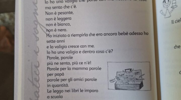 Cinque gli elaborati poetici con cui la classe, sotto la guida dell’insegnante Clarice Ferrero, ha partecipato al progetto: “Faccio goal”, “Mettiamo fine alla fame”, “Vivi bene insieme a me”, “La scuola ha un traguardo” e “Io ho una valigia” ispirati a quattro degli argomenti presenti nel Global Goals 2030, conosciuti anche come Obiettivi di sviluppo sostenibile: sconfiggere la povertà, sconfiggere la fame, salute e benessere, istruzione di qualità. L’ultima poesia è stata ispirata da un sogno fatto dall’insegnante raccontato in classe. Proprio a quest’ultimo, dal titolo “Io ho una valigia”, è stato assegnato il primo premio con la motivazione: “L’evocativa immagine della valigia fa trasparire dai versi ben ritmati, la sensibilità dei giovani autori e l’importanza ad essi accordata alle parole ricettacolo di significati, valori, emozioni e veicoli di relazioni buone, di rispetto reciproco, di sete di conoscenza”.