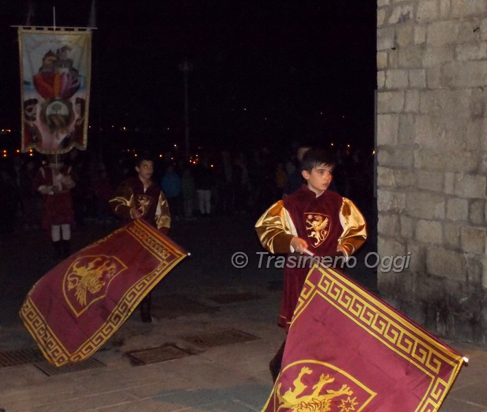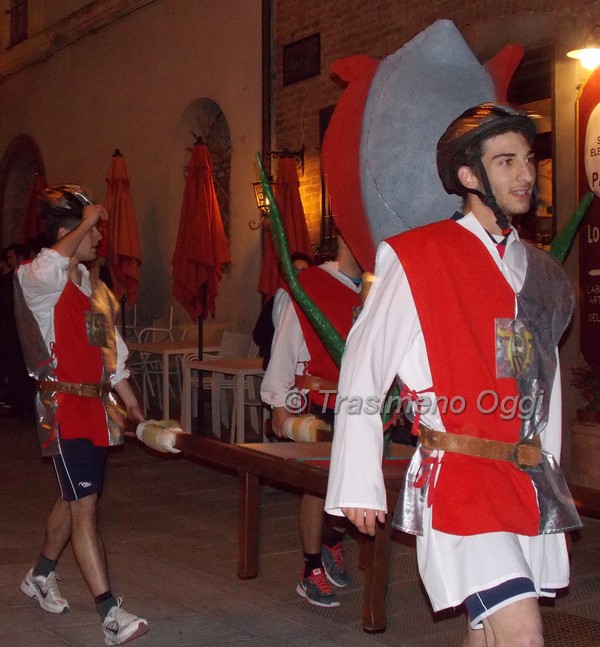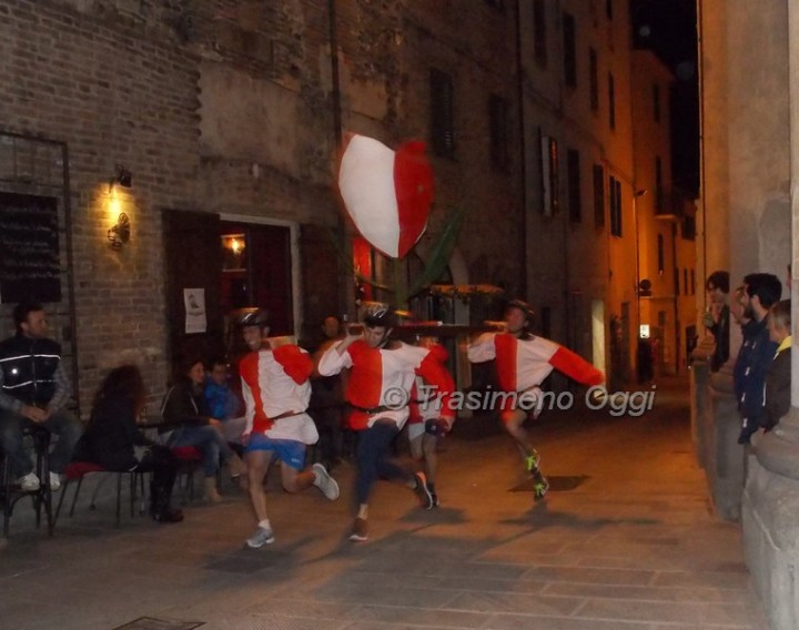 Si è svolta ieri sera l’attesa “provaccia” del Palio del Tulipano, l’attesa competizione che si svolgerà domani alle ore 18 fra le città che sono state protagoniste della vita di Ascanio della Corgna: Castiglione del Lago, Bettolle, Chiusi e Corciano. Tutti ben preparati e concentrati, sostenuti dalle rispettive tifoserie, si sono lanciati all’impazzata percorrendo velocemente e in salita il tratto di corso Vittorio Emanuele che va da Porta Senese (detta anche Porta dei Carri) fino a Piazza Mazzini. I biancoazzurri di Bettolle hanno dominato, vincendo la prima e seconda prova con il tempo complessivo di 25 secondi e 46 centesimi. Al secondo posto i biancorossi di Chiusi con il tempo complessivo di 26″ e 58; terzo il quartetto rosso-argento di Corciano in 27″ e 25, ultimi, almeno nelle prove, gli alfieri di Castiglione con il tempo di 27 secondi e 44 centesimi.