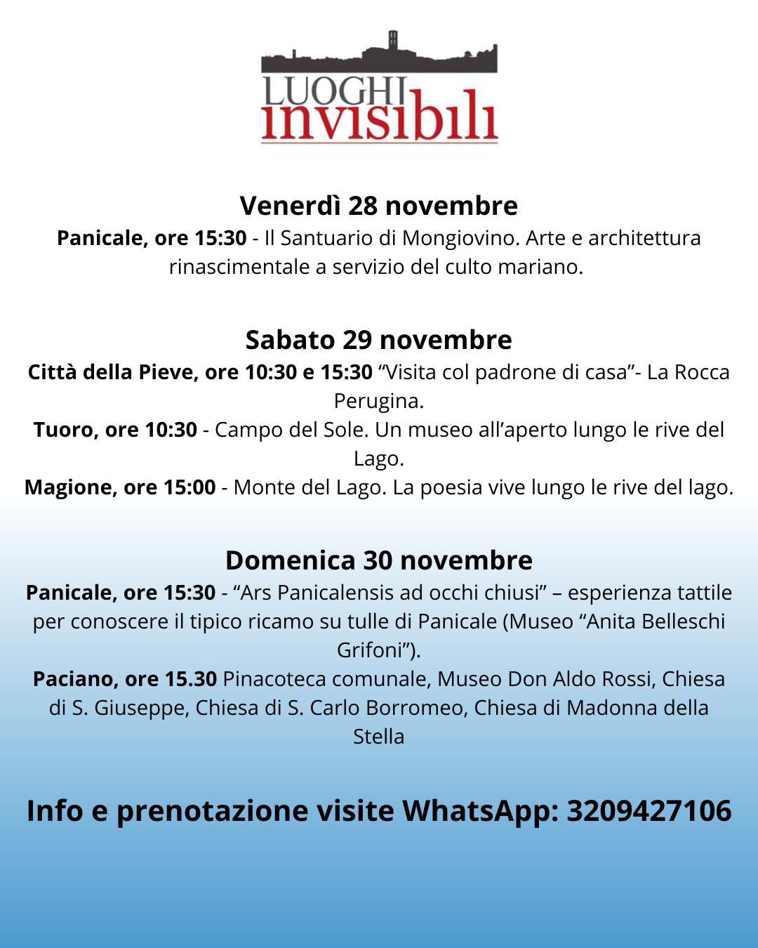 Luoghi Invisibili approda per la prima volta sulle sponde del Lago Trasimeno, inaugurando un’edizione che porta con sé il fascino della scoperta e la forza della memoria collettiva. Dopo oltre dieci anni di esperienze a Perugia, il format si espande, coinvolge gli otto comuni dell’Unione del Trasimeno, che uniscono patrimoni e storie spesso celati agli occhi del grande pubblico. Cinque giornate di esplorazioni, distribuite nei due weekend del 21-23 e 29-30 novembre 2025, offriranno al pubblico l’occasione di attraversare il lago non solo con lo sguardo, ma entrando nei suoi borghi e nei loro spazi più intimi: palazzi signorili, chiese di campagna, biblioteche storiche, musei, strade che custodiscono memorie dimenticate.