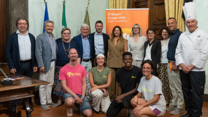 Il programma della kermesse – che ha il patrocinio della Regione Umbria, Assemblea Legislativa dell’Umbria, Gal Trasimeno Orvietano, Camera di Commercio dell’Umbria e dei Comuni di Magione, Passignano sul Trasimeno, Panicale, Tuoro e Castiglione del Lago – è stato presentato martedì 17 giugno presso il salone d’Onore di palazzo Donini, a Perugia, alla presenza di Simona Meloni, assessore all’Agricoltura e al Turismo della Regione Umbria; Fabio Cancelloni, presidente APS Trasimeno Cultura Futuro Sostenibilità; Matteo Burico, sindaco di Castiglione del Lago; e Simona Cancelloni, in rappresentanza della Fondazione “Nati per Vivere”. Tra i presenti Cristian Betti, consigliere regionale, Daniele Raspati, assessore comunale all’associazionismo di Magione, Francesca Caproni, Gal Orvietano-Trasimeno, Marcello Zeppi, direttore artistico del settore danza e cinema del Festival, alcuni rappresentanti delle associazioni coinvolte (come il Festival Internazionale Green Music, l’associazione Provinciale Cuochi Perugia della Federazione italiana cuochi, l’associazione Kora e il Rotary Club Perugia Trasimeno) e degli sponsor.
